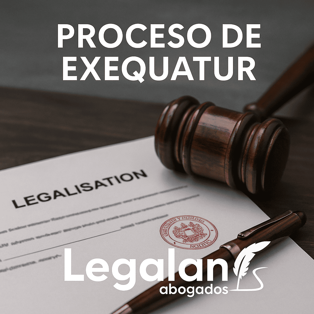 El exequátur es el proceso judicial por el cual Colombia reconoce una sentencia extranjera para que produzca efectos en el país. Lo conoce, por regla general, la Sala de Casación Civil de la Corte Suprema de Justicia (art. 30, CGP).